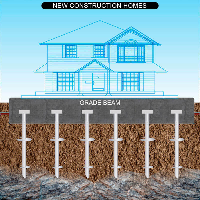 Our Helical Piles work perfectly for new construction and residential foundation repair, providing solutions to withstand the heaviest loads and perfectly adapted to any type of soil.
