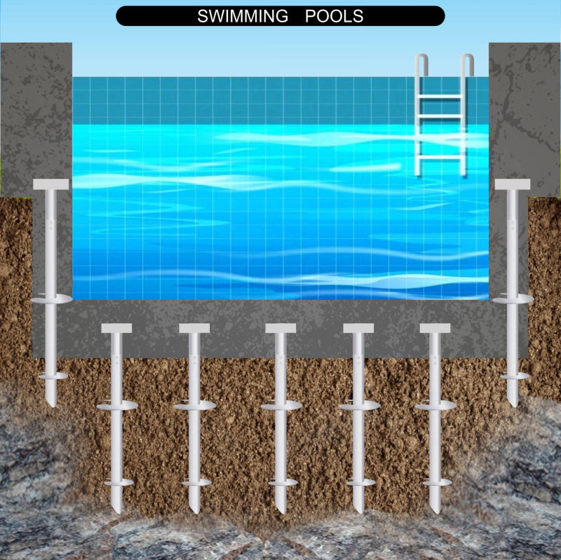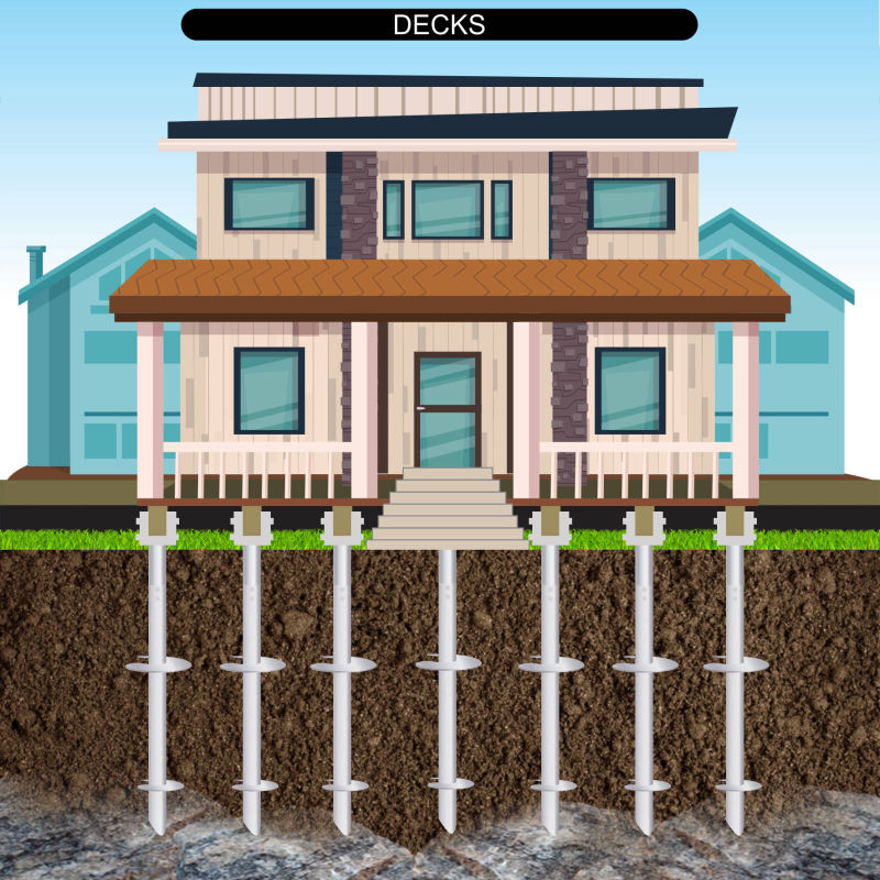 Our Helical Piles are suitable for most Residential, Commercial, Industrial and Utility applications. They can be used for Foundation Repair, New Home Construction, Swimming Pools, Boardwalks, Decks, Porches, Solar Panel Foundations, Oil & Gas, Roadway Signage, Traffic Signals, Billboards, Cell Towers, etc.